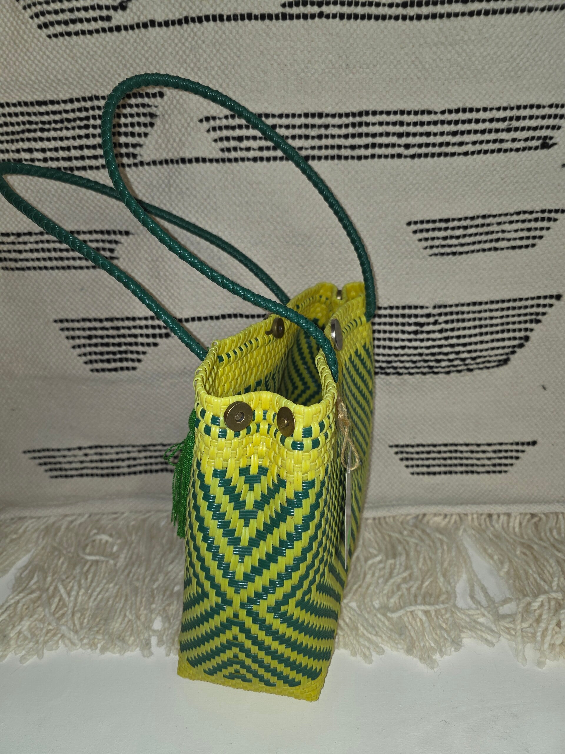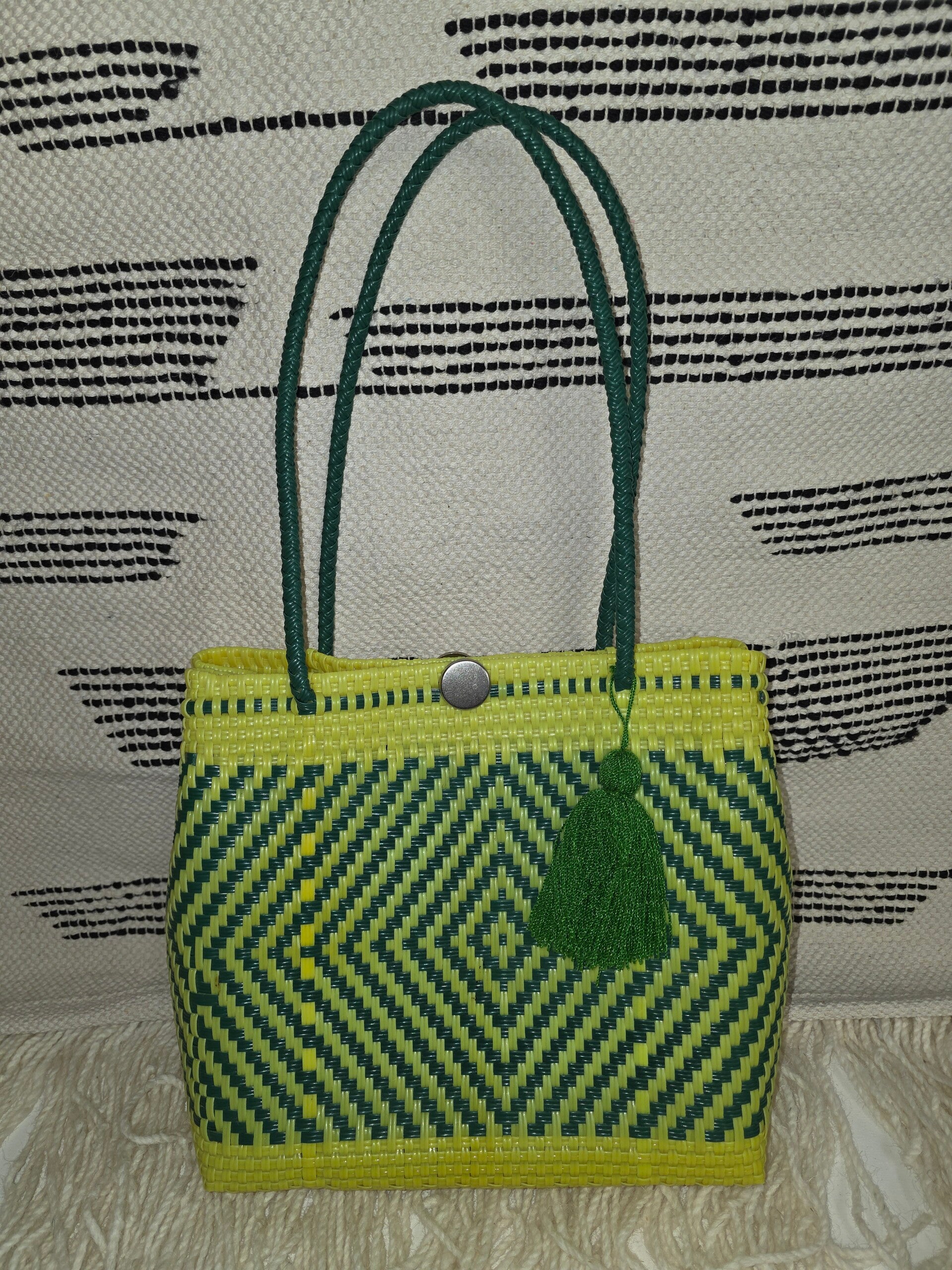 Beautiful, Resistant, durable, waterproof, hand done purses made in Puebla Mexico. MATERIAL Recycled plastic. great to carry books, Clothes anything heavy. Hermosa Bolsas de plastico reciclable, perfectas para la playa o cualquier actividad. Hecho en Mexico.