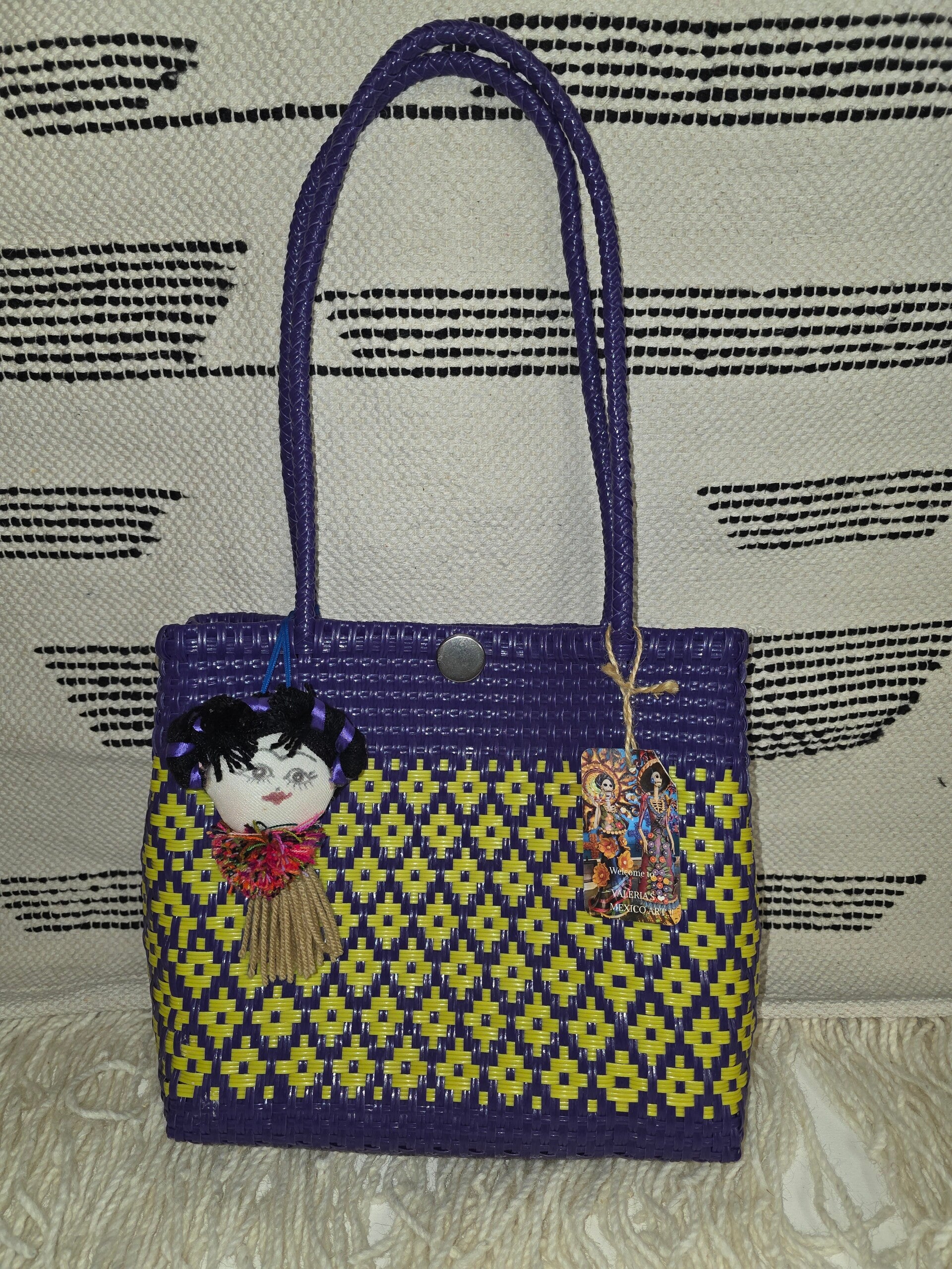 This is a beautiful Satchel Plastic purse, very Resistant Hand done in Puebla, Mexico. Free Gift accesorie Frida face.