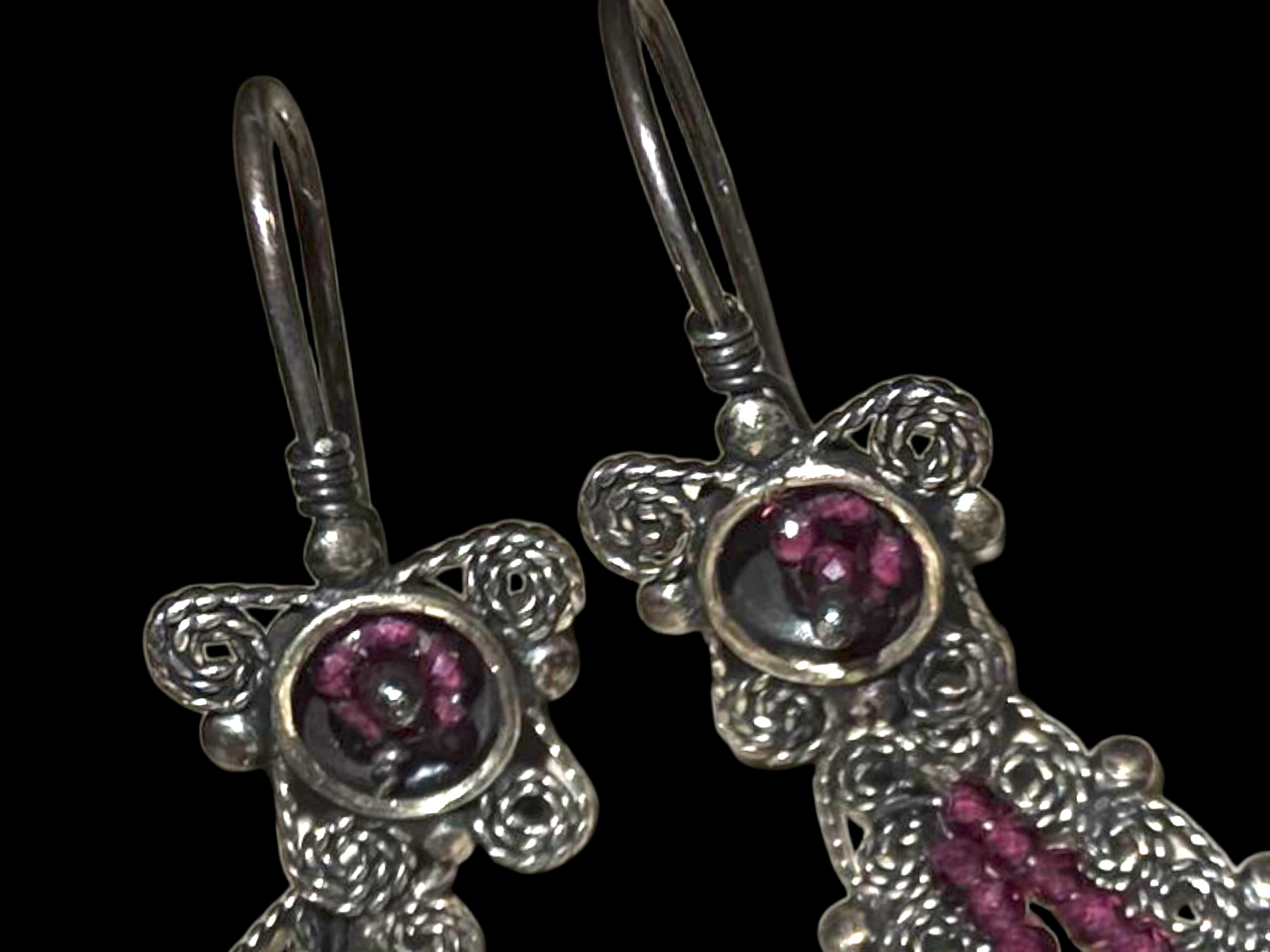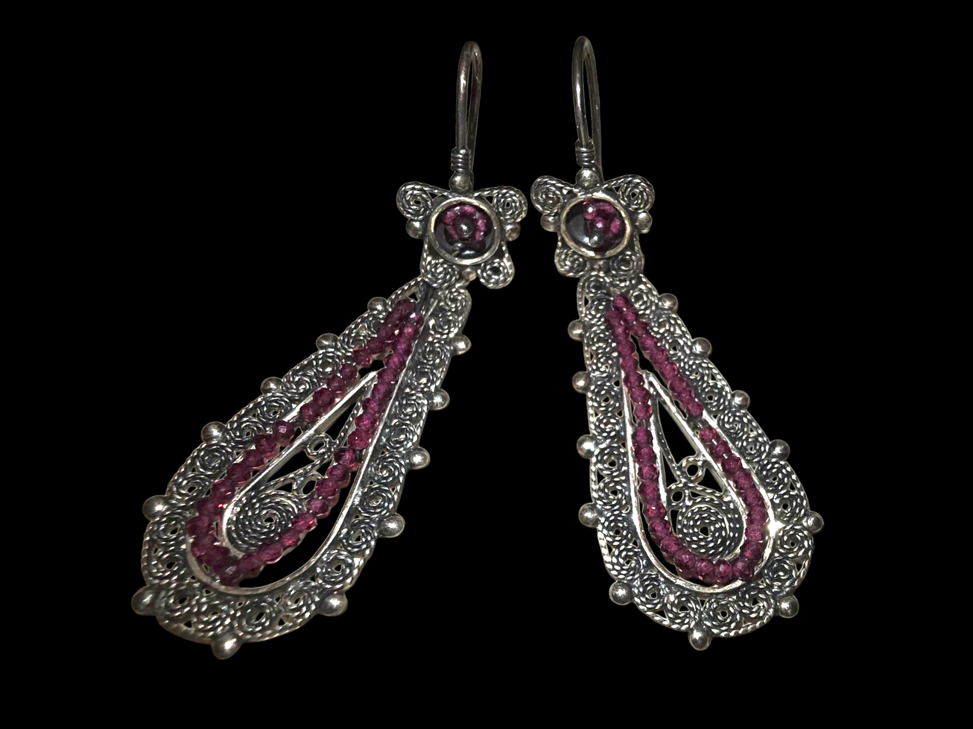 Traditional Handmade Earrings from Oaxaca. Silver 925 Earrings with Beautiful Garnet Stone.